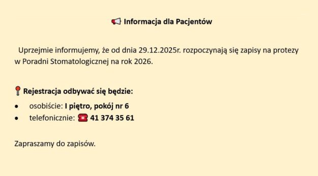Zapisy na protezy w Poradni Stomatologicznej na rok 2026