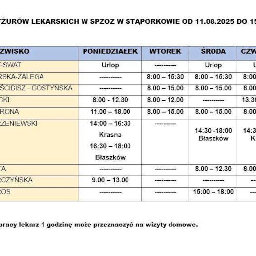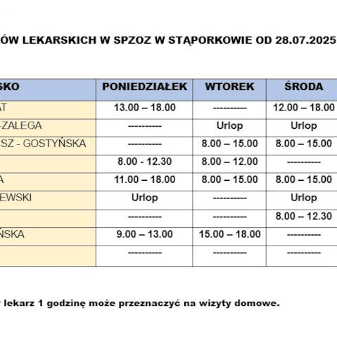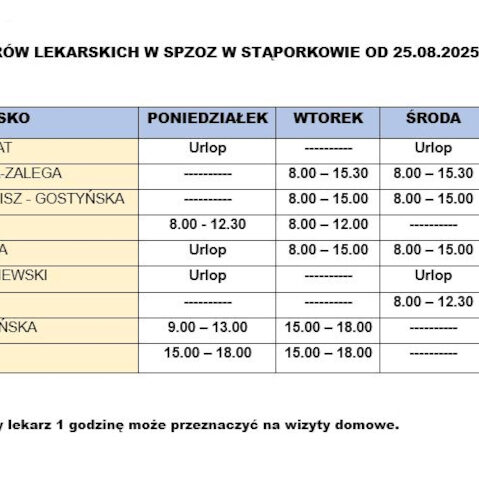Ważna informacja dla Pacjentów !!! Drodzy Pacjenci, Uprzejmie informujemy, że od 2 września 2025 r. w Ośrodku Zdrowia w Niekłaniu Wielkim (ul. Szkolna 2) będzie przyjmował lekarz podstawowej opieki zdrowotnej. Dyżury lekarskie odbywać się będą w każdy wtorek w godzinach 8:00 – 12:30. Zapisy w rejestracji w Stąporkowie tel. 41 3745550 lub osobiście w Ośrodku…
