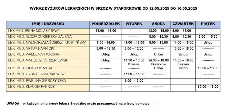 Samodzielny Publiczny Zakład Opieki Zdrowotnej w Stąporkowie uruchamia od dnia 2 czerwca 2025 r. Poradnię medycyny pracy – nowa oferta dla mieszkańców i lokalnych firm Samodzielny Publiczny Zakład Opieki Zdrowotnej w Stąporkowie poszerza zakres swojej działalności o świadczenia z zakresu medycyny pracy oraz badania dla kierowców i kandydatów na kierowców. Usługi będą realizowane przez wykwalifikowaną…