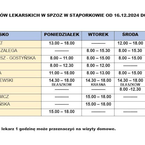 SzczegółyUWAGA Dodatkowe godziny przyjęć pacjentów Lek. Pediatra Małgorzata Ścibisz-Gostyńska Poniedziałek: 8.00-11.00