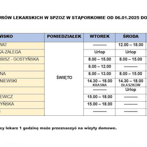 Zapisz się do SP ZOZ w Stąporkowie – Twój gminny ośrodek zdrowia! Dlaczego warto? Aż 8 lekarzy podstawowej opieki zdrowotnej – szybki dostęp do specjalistycznej pomocy. Opieka koordynowana – z możliwością konsultacji z nefrologiem i dietetykiem. Specjaliści na miejscu – okuliści, laryngolodzy, ginekolodzy, stomatolodzy, fizjoterapeuci, psychiatrzy, psychologowie, terapeuci. Opieka pediatryczna – dwaj doświadczeni lekarze pediatrzy,…